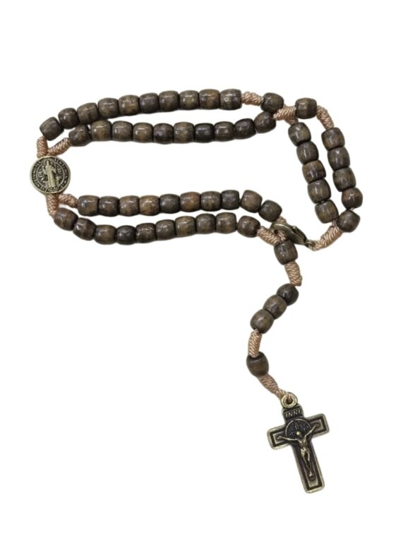 Pulseira Terço de São Bento em madeira imbuia 4 mm