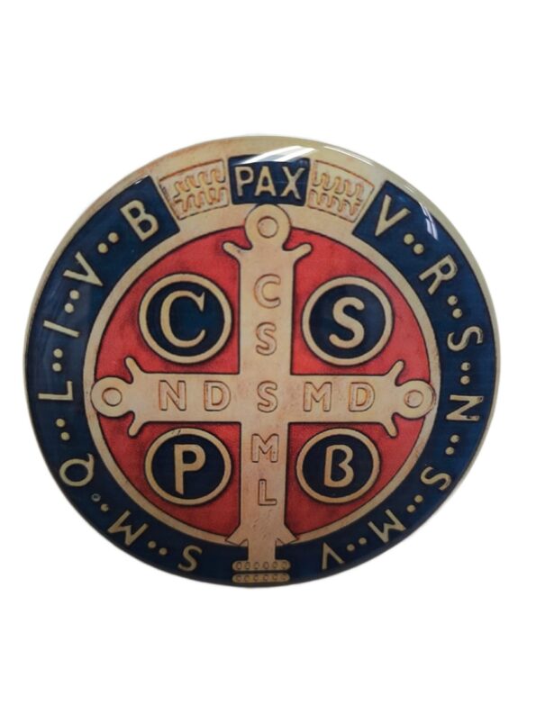Adesivo para carro com a medalha de São Bento colorido, ideal para quem busca proteção e bênçãos em seus caminhos.