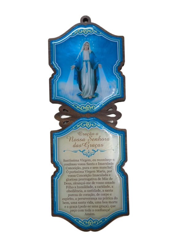 Delicado e cheio de significado, este adorno de porta traz a imagem de Nossa Senhora das Graças, ideal para proteger e abençoar o lar. Uma peça que une fé e decoração, perfeita para colocar na entrada da casa ou em ambientes de oração.