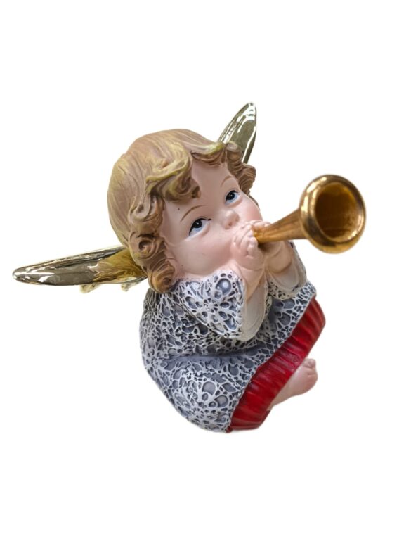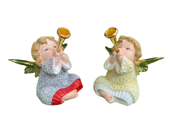 Produzido com materiais de alta qualidade, este anjo exibe detalhes encantadores que capturam a essência da celebração e da devoção. A trombeta que ele toca simboliza o anúncio de boas novas e a elevação da alma, tornando-o um presente perfeito para batizados, comunhões e outros benefícios especiais.