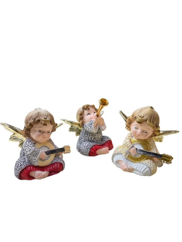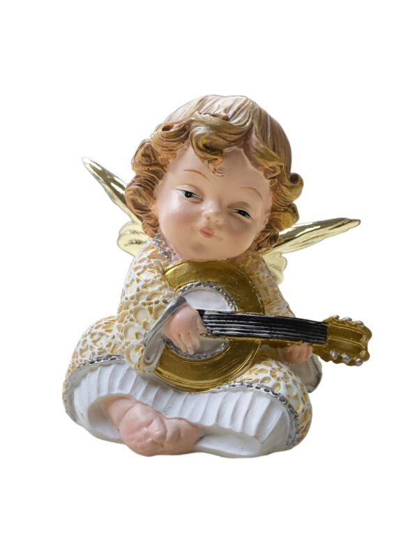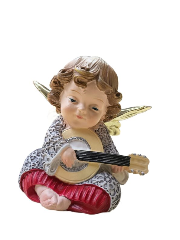 Celebre a alegria e a espiritualidade com Anjo sentado com instrumentos, que possui 10 cm de altura. Esta linda figura é ideal para trazer um toque de música celestial e proteção ao seu lar, seja em altares, prateleiras ou mesas.