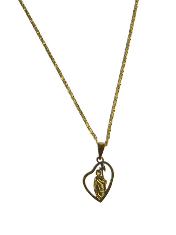 Uma peça de fé e proteção. O colar folheado São Judas vazado apresenta um design delicado e cheio de significado, ideal para quem deseja carregar consigo a devoção ao santo das causas impossíveis. Perfeito para o dia a dia ou para presentear