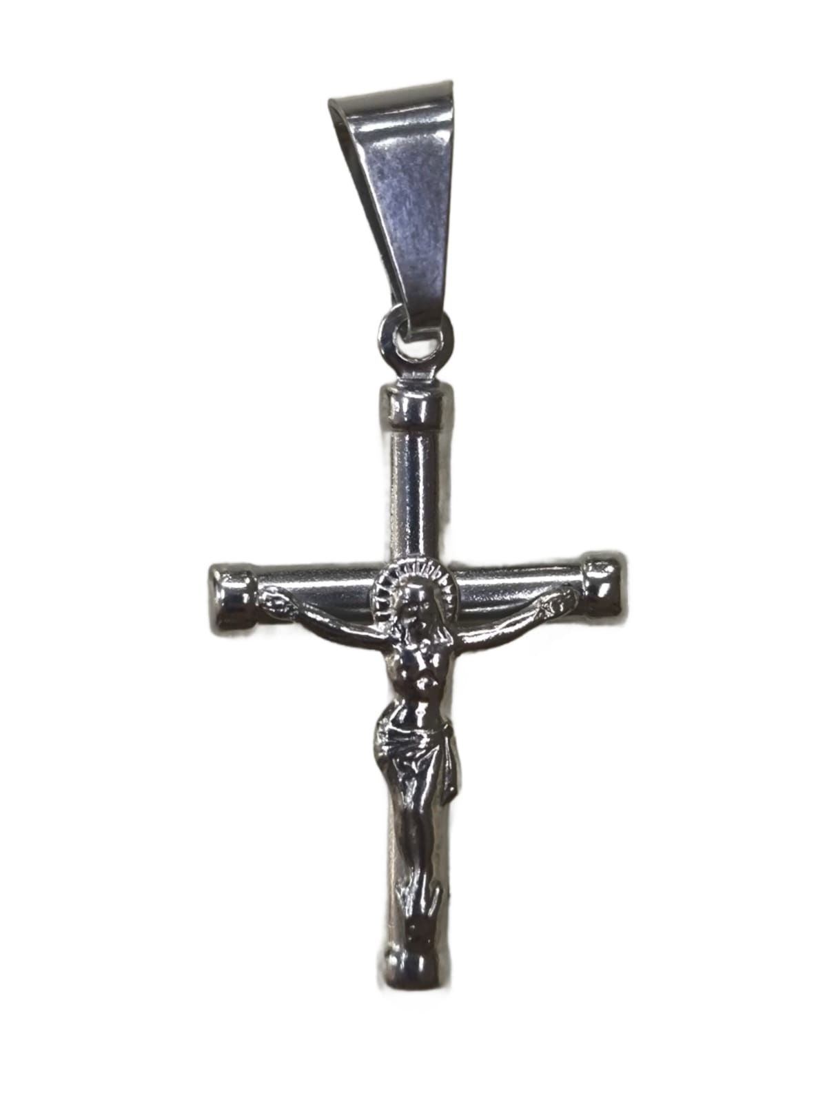 Crucifixo em aço inoxidável de tamanho grande, resistente e sofisticado. Ideal para uso diário ou como peça de devoção.