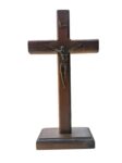 Crucifixo madeira Cristo ouro velho mesa e parede 17 cm