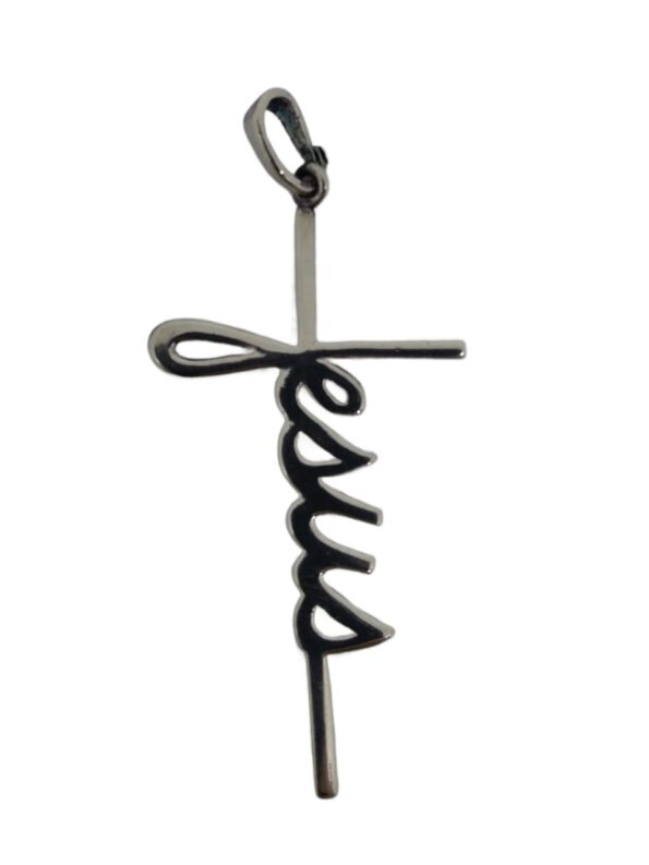 Esta cruz em prata 925 apresenta o nome “Jesus” gravado em destaque, simbolizando a fé e a devoção ao Salvador. Seu design minimalista e moderno combina elegância com espiritualidade, tornando-a uma peça especial para uso pessoal ou como presente significativo.