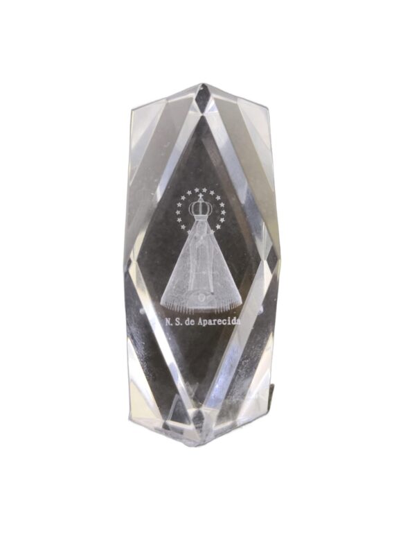 Uma peça delicada e cheia de devoção! Este cubo de cristal lapidado fino traz a imagem de Nossa Senhora Aparecida gravada com precisão, criando um brilho sofisticado que reflete a luz de maneira encantadora. No tamanho médio, é perfeito para decorar, meditar ou presentear com fé.