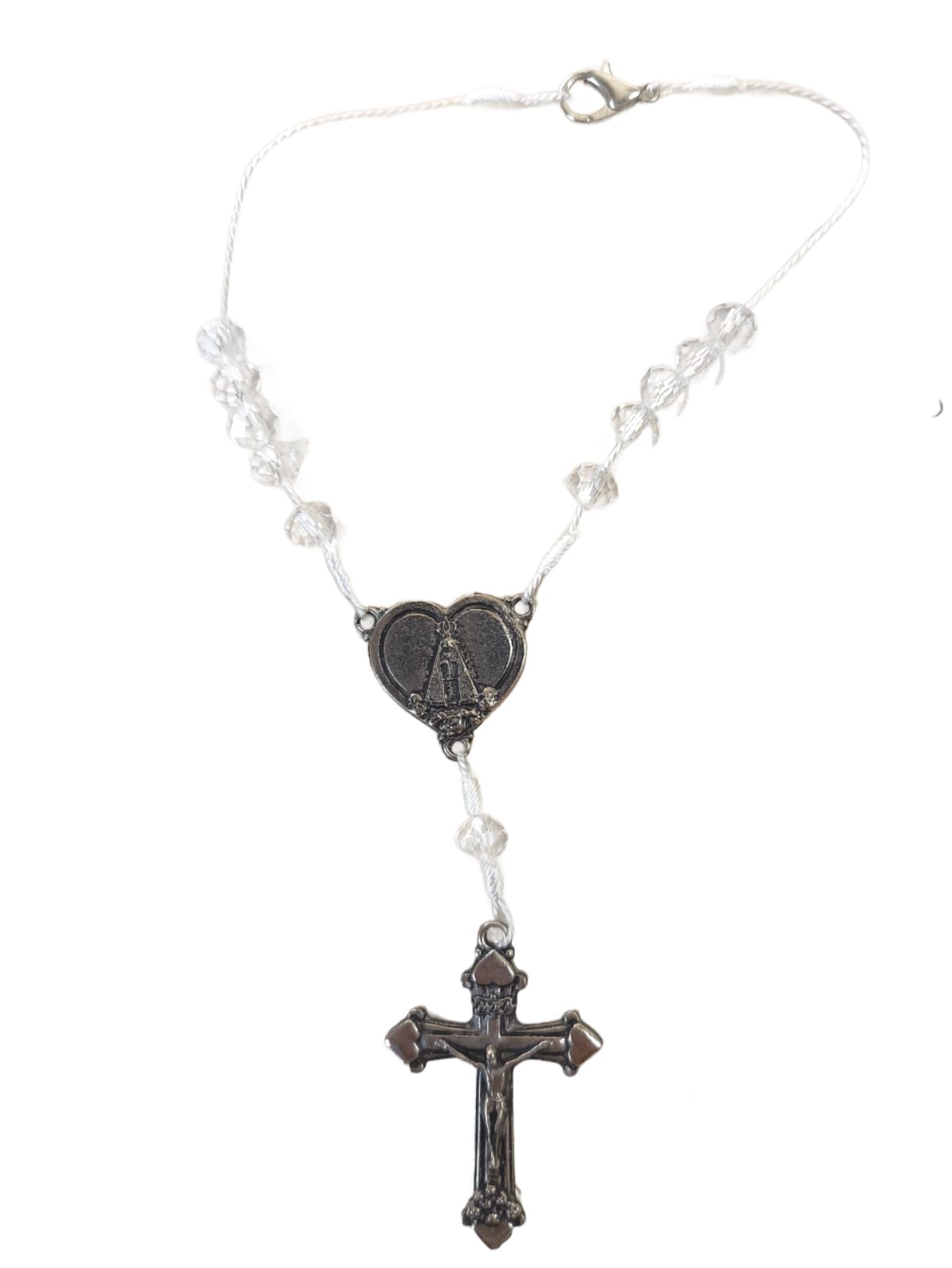 Esta dezena para carro, com contas de cristal transparente e medalha de Nossa Senhora Aparecida, é um símbolo de proteção e fé. Ideal para pendurar no retrovisor, traz elegância e serenidade, além de invocar a intercessão da Padroeira do Brasil em todas as suas viagens. Perfeita para devotos de Nossa Senhora Aparecida que desejam ter sua bênção constante.
