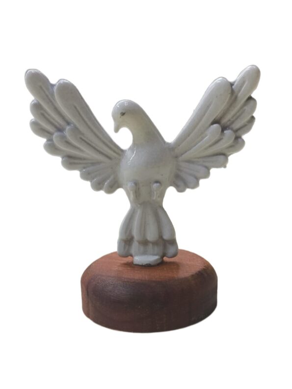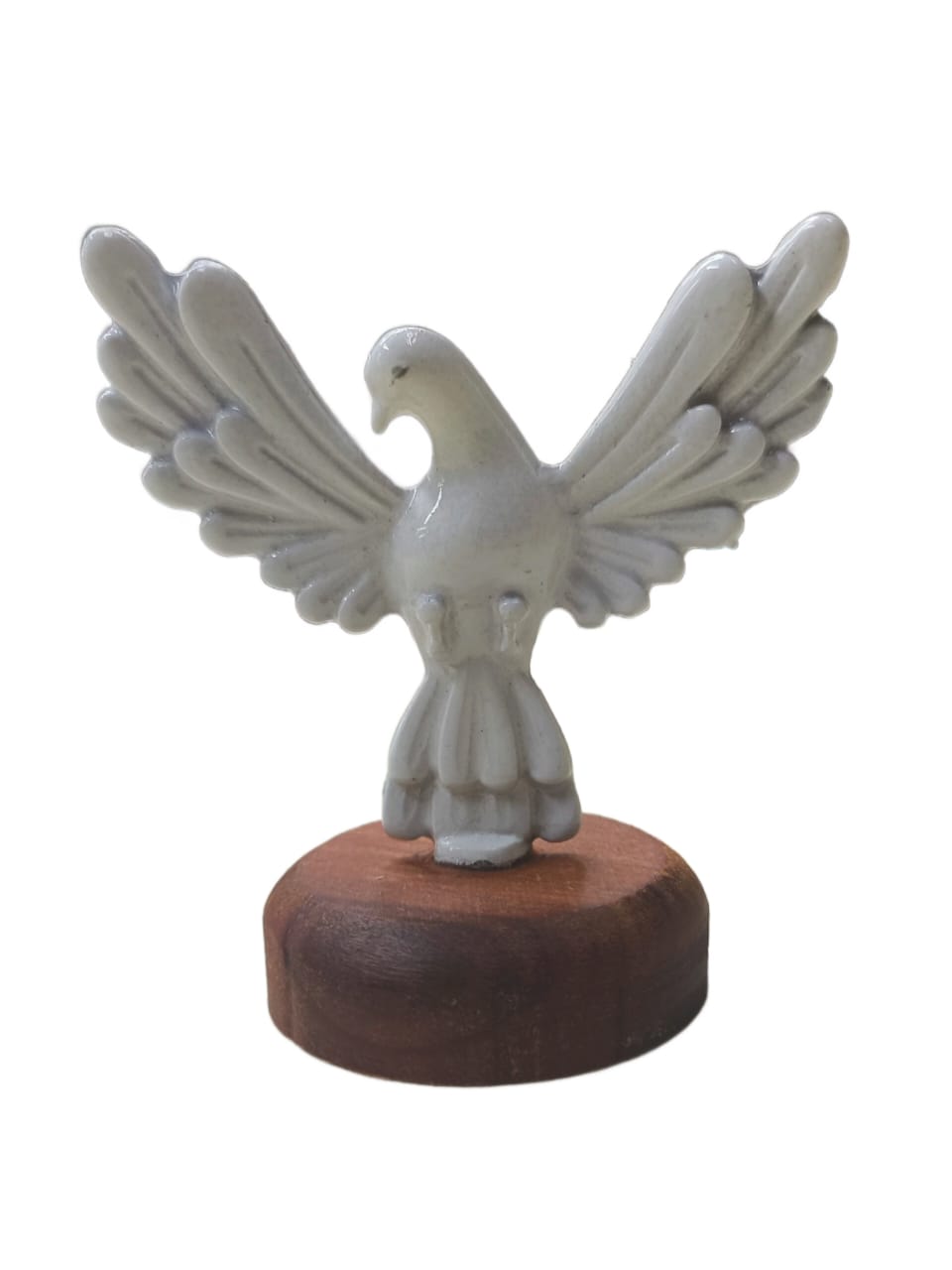 Pequeno no tamanho, mas cheio de significado. Este delicado Divino Espírito Santo é feito com detalhes em metal, base madeira, combinando tradição e beleza em uma peça sóbria e expressiva. Ideal para presentear, decorar ambientes ou carregar consigo um símbolo de fé, paz e proteção.