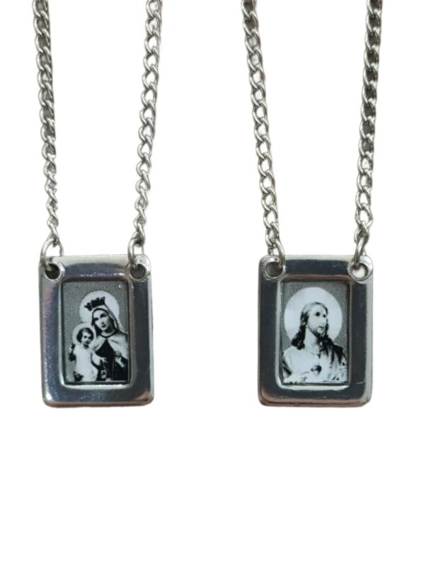 Produzido em aço inox, o escapulário é resistente, leve e não escurece com o tempo, sendo perfeito para o uso diário. As imagens coloridas trazem destaque à peça, tornando-a uma opção elegante e ao mesmo tempo espiritual.