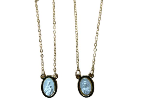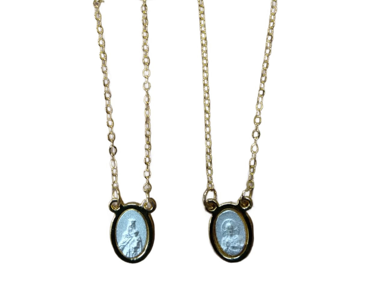 Este escapulário folheado a ouro, com medalha oval prateada, é uma peça elegante e cheia de significado. Representando fé e proteção, ele combina o brilho dourado com o toque sofisticado da medalha prateada, criando um acessório harmonioso e diferenciado. Perfeito para uso diário ou para presentear alguém especial, é uma escolha ideal para quem deseja carregar sua devoção com e