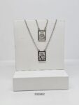 Este escapulário de aço inoxidável, com 60 cm de comprimento, apresenta as medalhas de Nossa Senhora do Carmo e do Sagrado Coração de Jesus, dois grandes símbolos de fé e proteção.