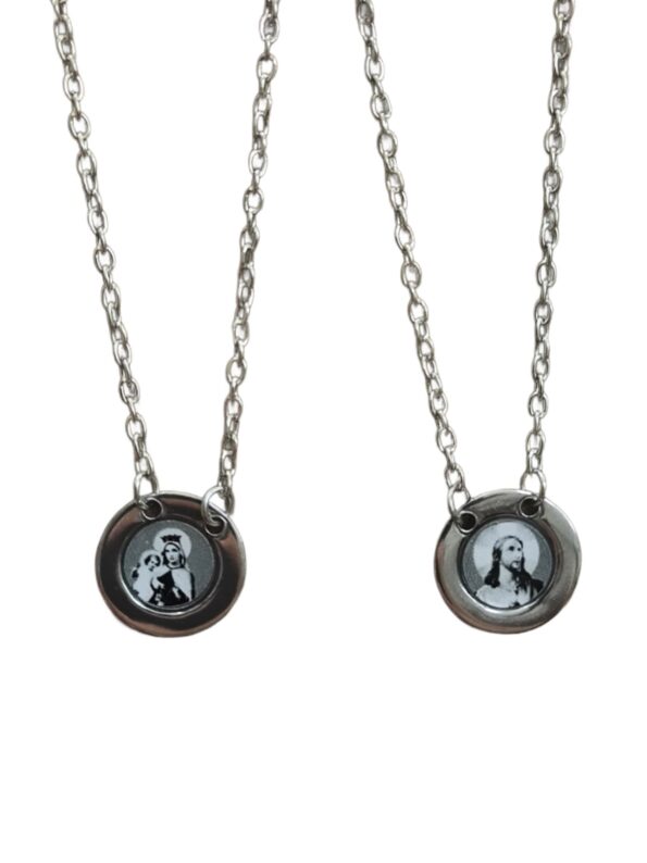O escapulário redondo preto e branco em aço é uma peça moderna e cheia de simbolismo, ideal para quem deseja carregar sua fé com estilo e discrição. Com acabamento em aço inox, ele oferece resistência, durabilidade e um visual elegante para o uso diário.