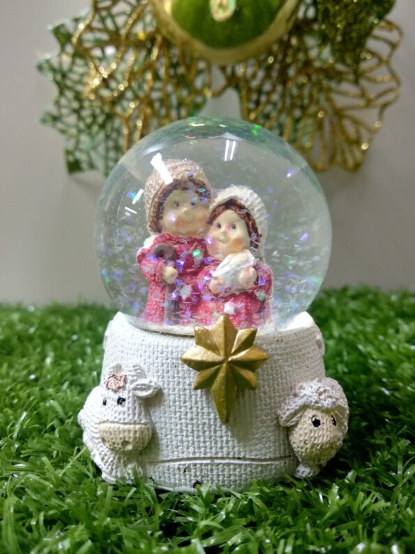 Ideal para pequenos altares, mesas e prateleiras, este globo é perfeito para dar um toque especial à sua decoração natalina, trazendo a beleza do nascimento de Jesus para o seu lar.