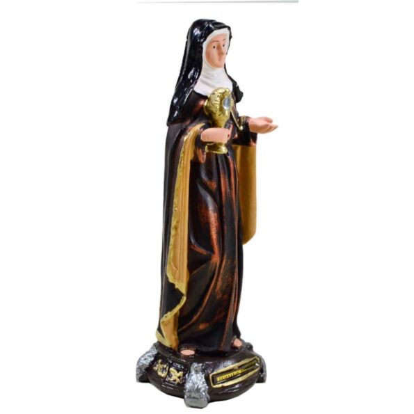 Conhecida por sua devoção e vida de humildade, Santa Clara é um símbolo de fé e proteção. Essa imagem, feita em borracha inquebrável, é ideal para garantir resistência e durabilidade.