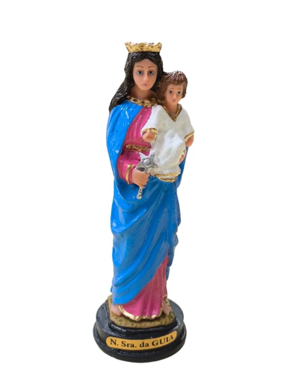 A Imagem de Nossa Senhora da Guia em resina 15 cm representa Maria como a Mãe que orienta e conduz os fiéis no caminho da fé, sendo símbolo de proteção, sabedoria e luz espiritual.