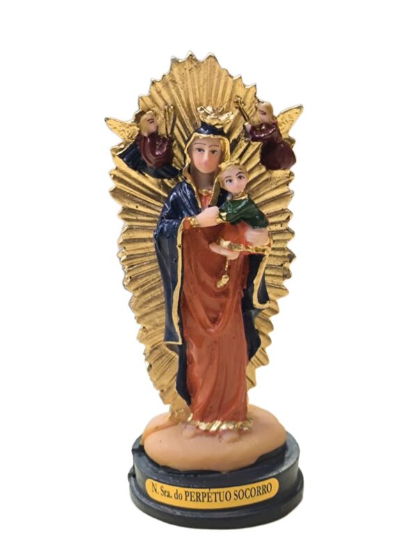 Nossa Senhora do Perpétuo Socorro é conhecida como a mãe que nunca abandona, oferecendo proteção e auxílio a todos que recorrem à sua intercessão. A devoção ao Perpétuo Socorro é marcada pela confiança no cuidado amoroso de Maria em momentos de necessidade. Esta imagem de Nossa Senhora do Perpétuo Socorro, com 12 cm de altura, é feita em resina de alta qualidade, com detalhes esculpidos com delicadeza e precisão.