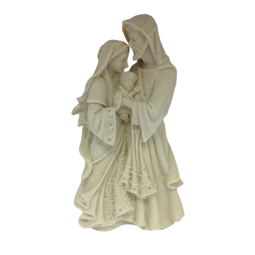 Esta imagem da Sagrada Família Ternura, feita em resina com 20 cm de altura, possui detalhes delicados que transmitem paz e devoção. É perfeita para compor um cantinho de oração em casa ou para presentear alguém especial.