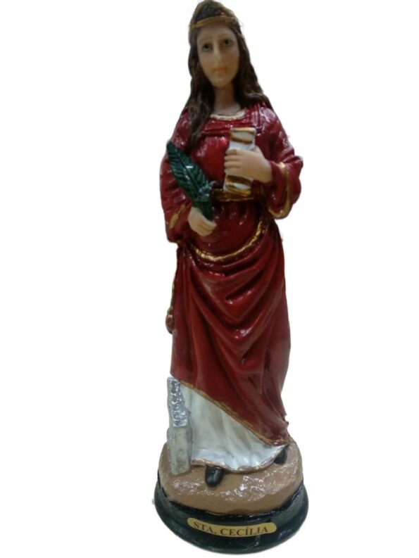 Feita em resina de alta qualidade , esta imagem de 20 cm transmite a elegância e serenidade de Santa Cecília, perfeita para devotos e para quem deseja ter sua presença em casa ou no espaço de culto.