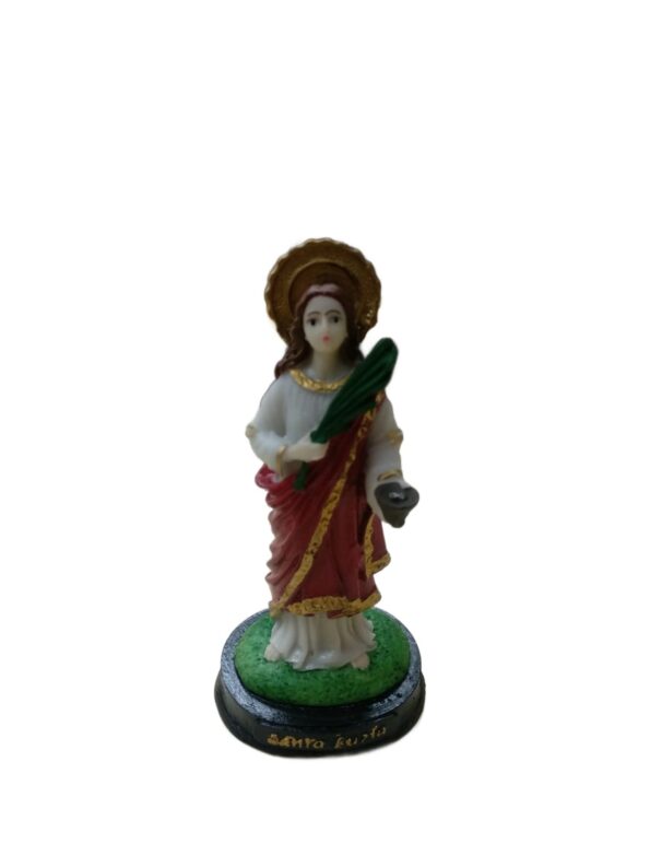 A imagem de Santa Luzia representa a protetora dos olhos e da visão, venerada por fiéis que buscam cura e proteção contra problemas oculares. Santa Luzia dedicou sua vida à fé cristã e é um símbolo de força e devoção.