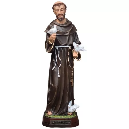Esta imagem de São Francisco de Assis, com 40 cm de altura, é confeccionada em resina com detalhes delicados e acabamento de alta qualidade. São Francisco, conhecido como o padroeiro dos animais e da natureza, é símbolo de humildade, simplicidade e amor pela criação divina.