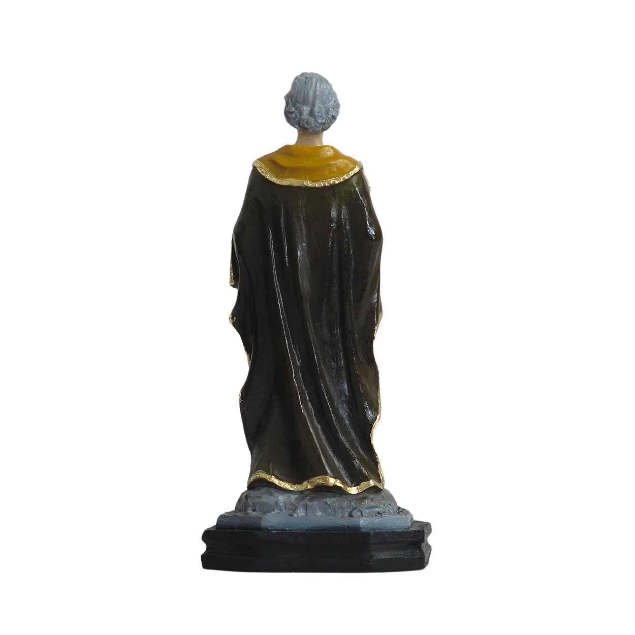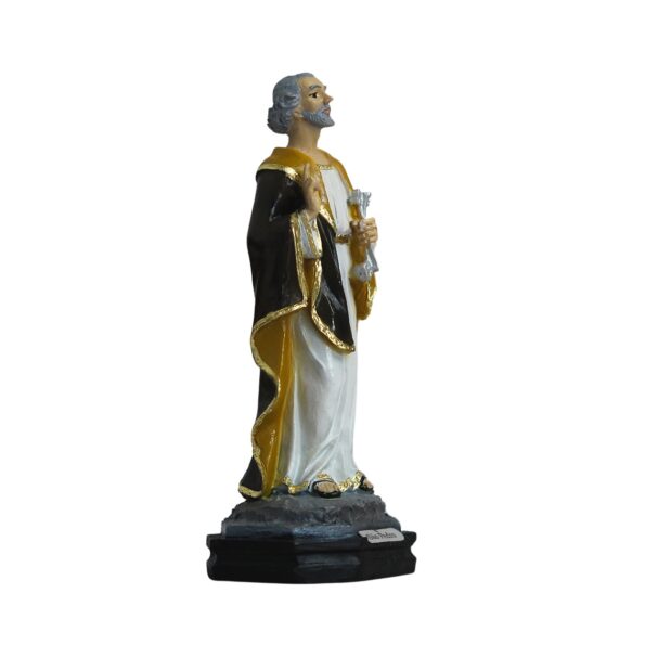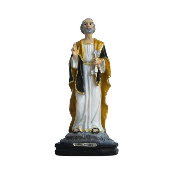 Esta imagem de 15 cm em resina retrata São Pedro, apóstolo fiel e primeiro Papa da Igreja, com as tradicionais chaves do Reino nas mãos — símbolo de sua autoridade espiritual. Jesus disse a ele: “Tu és Pedro, e sobre esta pedra edificarei a minha Igreja” (Mateus 16,18), marcando sua missão única na história da salvação.