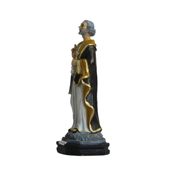 Com acabamento detalhado e expressão serena, esta peça é ideal para oratórios, ambientes de oração ou como presente devocional para quem busca a proteção e a intercessão de São Pedro em decisões importantes da vida.