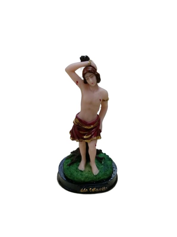Esta imagem de São Sebastião, com 12 cm de altura, é confeccionada em resina de alta qualidade, trazendo riqueza de detalhes para homenagear este santo, conhecido como padroeiro dos soldados, atletas e protetor contra epidemias.