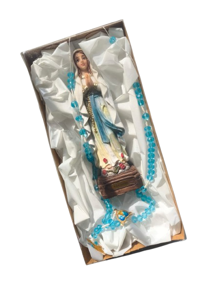 z Kit Nossa Senhora de Lourdes em resina – 15 cm com terço