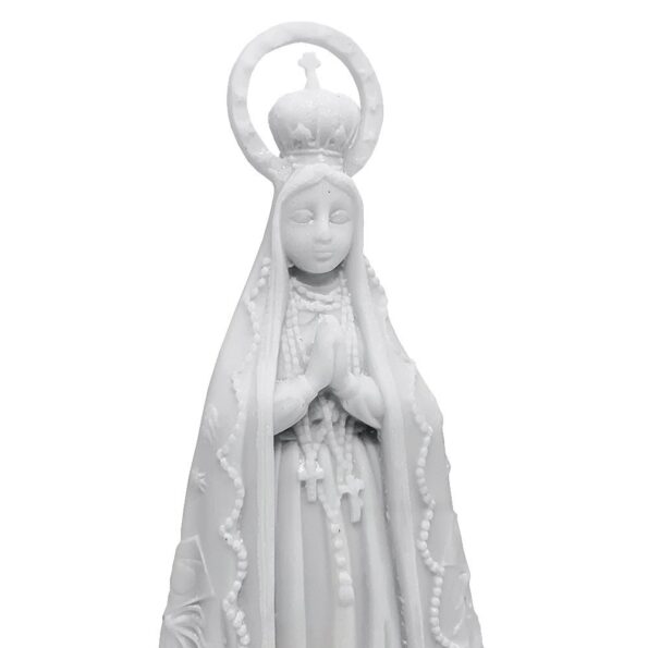 Nossa Senhora Aparecida, padroeira do Brasil, é maravilhosamente representada nesta imagem de mármore de 20 cm. Com um acabamento elegante, essa peça traz a pureza e majestade de Maria, sendo ideal para devoção pessoal ou para honrar a Rainha e protetora de todos os brasileiros.