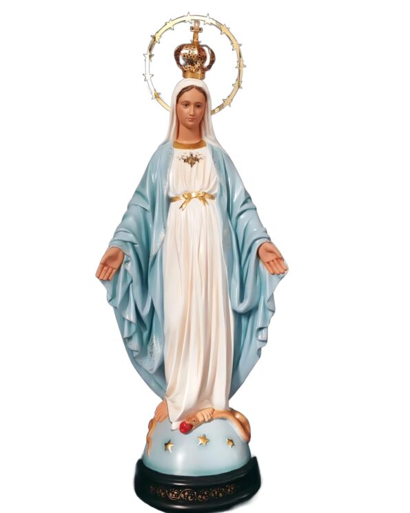 A imagem de Nossa Senhora das Graças, símbolo de proteção e bênçãos, é uma peça essencial para os devotos. Esta estátua, com 35 cm de altura, é confeccionada em Durata, um material de alta qualidade conhecido por sua durabilidade e excelente acabamento. Cada detalhe é minuciosamente trabalhado para refletir a serenidade e a compaixão de Nossa Senhora das Graças.
