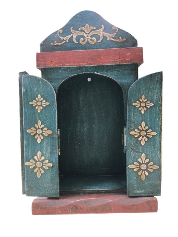 z Oratório barroco em madeira com porta – azul para imagem 15 cm