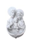 Com 14 cm de altura, feita em resina branca, esta peça delicada une funcionalidade e espiritualidade. A pequena pia pode ser abastecida com água benta e colocada na entrada da casa, no quarto ou no oratório, como sinal de bênção e proteção constante.