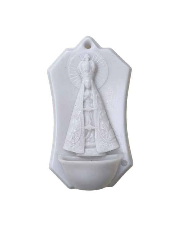 Z Pia de água benta Nossa Senhora Aparecida branca em resina – 14 cm