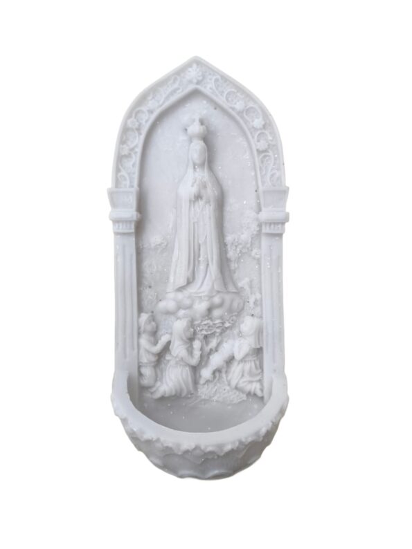 Pia de água benta Nossa Senhora de Fátima branca em resina – 16 cm