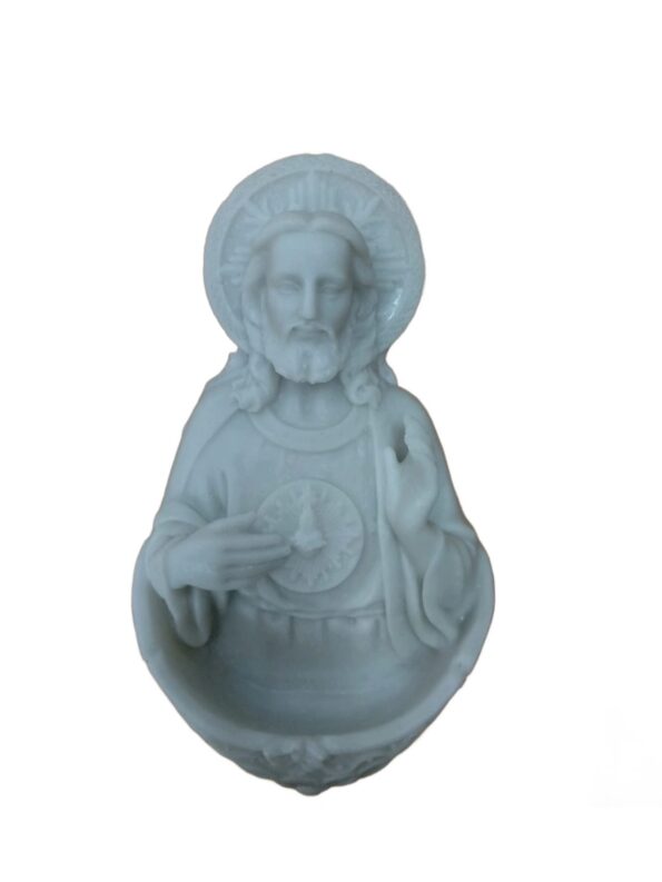 Z Pia de Água Benta Sagrado Coração de Jesus – resina branca 16 cm