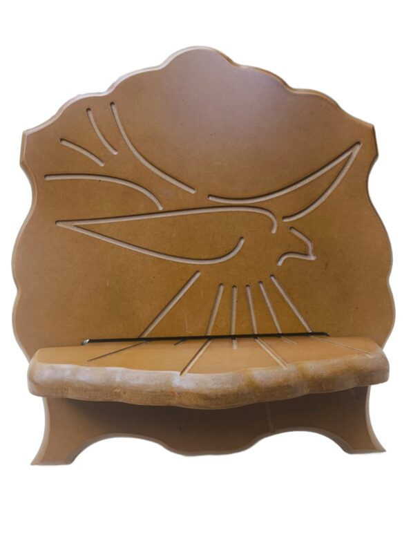Com design delicado e acabamento em madeira natural, este porta Bíblia é uma peça que transmite serenidade e fé. O destaque fica por conta da pomba do Espírito Santo, símbolo da presença divina que inspira e guia a leitura das Escrituras.