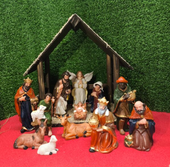 Presépio em Resina com Cabana – 12 Peças (15 cm)