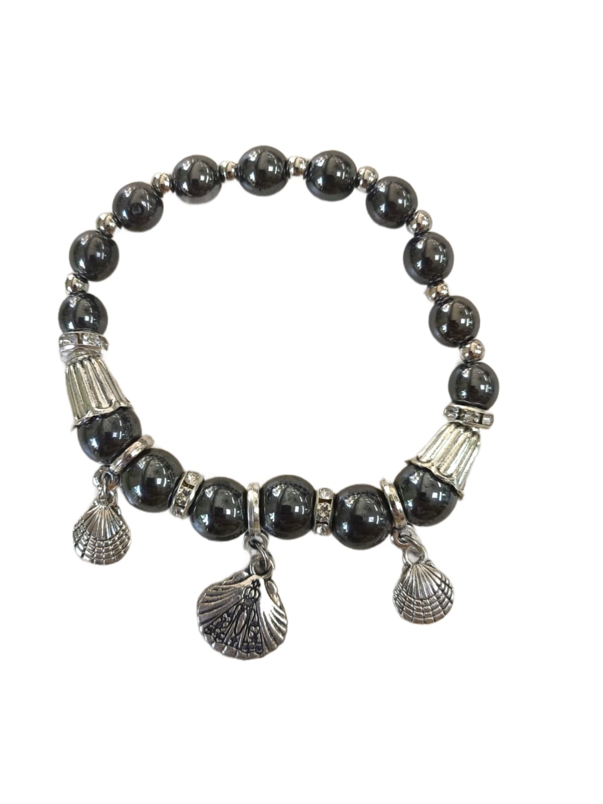 Pulseira de Hematita com Conchas e Nossa Senhora Aparecida