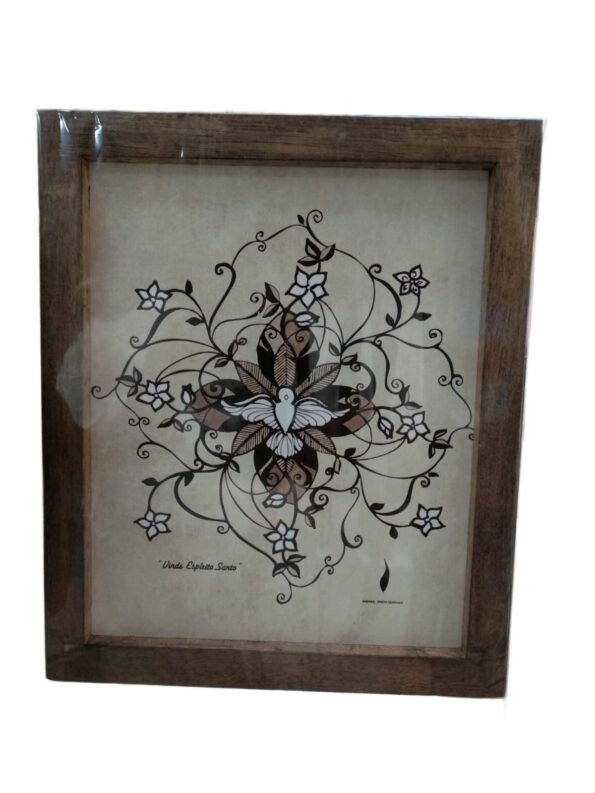 Este inspirador quadro de 30×20 cm traz a imagem do Divino Espírito Santo, representado em forma de pomba, símbolo da paz, sabedoria e da presença de Deus entre nós. A imagem, rica em detalhes, irradia luz e serenidade, tornando-se um poderoso símbolo de fé e proteção.