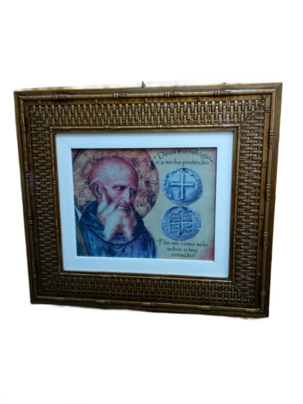 Este magnífico quadro de 20×25 cm apresenta a imagem de São Bento, um dos santos mais reverenciados da Igreja Católica e conhecido como o patrono da Europa e da vida monástica. Com sua aura de serenidade e sabedoria, São Bento é um símbolo de proteção e fé.