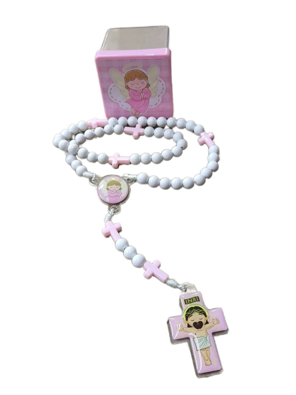 O Terço Infantil Rosa com Caixa Acrílica é uma peça devocional especialmente desenvolvida para crianças, unindo fé, delicadeza e praticidade. Ideal para ensinar a oração do terço desde cedo, incentivando a devoção e a conexão com Deus.